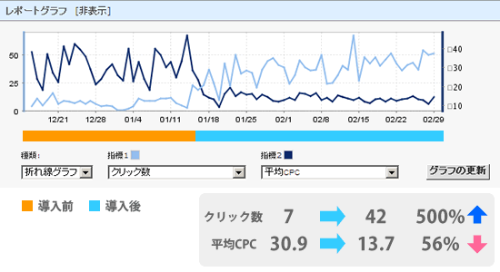 このケースでは導入前でも1000個以上のキーワードを設定していたため、現在のキーワード数がそれ以下の場合はさらに大きな効果が期待できます。